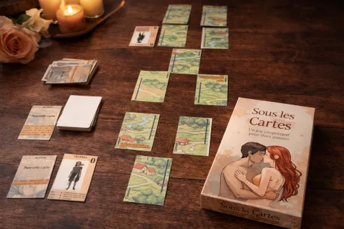 Sous les Cartes est un jeu de société coopératif pour deux joueurs, inspiré de l’univers du roman Gingelys (le jeu existe dans le roman, il est d'ailleurs joué par certains personnages).